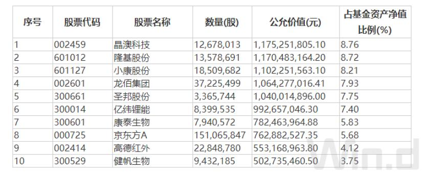 具体来看,该基金主要在新能源板块内部进行了调整,减持了隆基股份、亿纬锂能,加仓了晶澳科技、小康股份等个股,其中,晶澳科技从三季报的第九大重仓股跃升至第一大重仓股,增持了343.69万股。