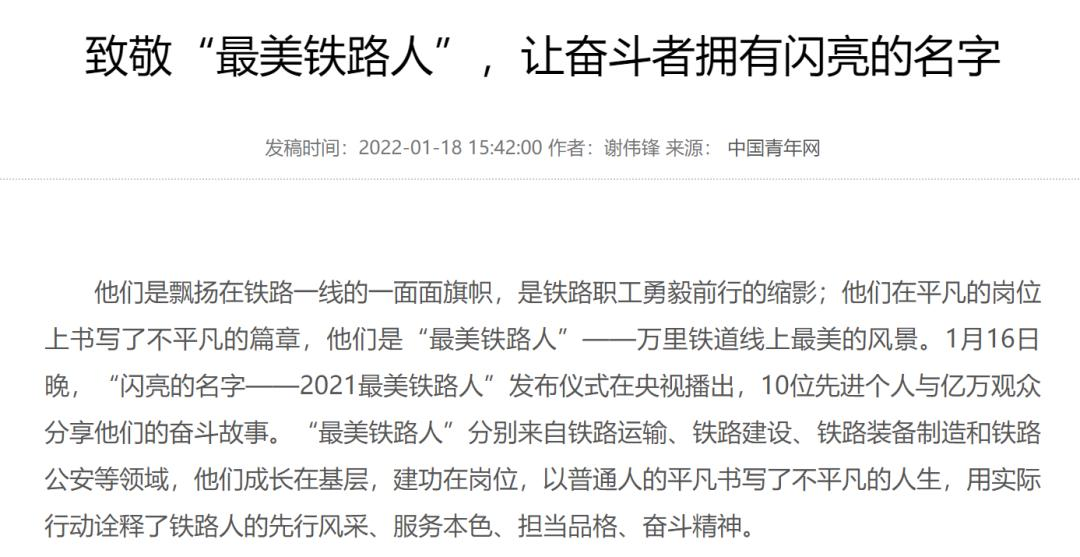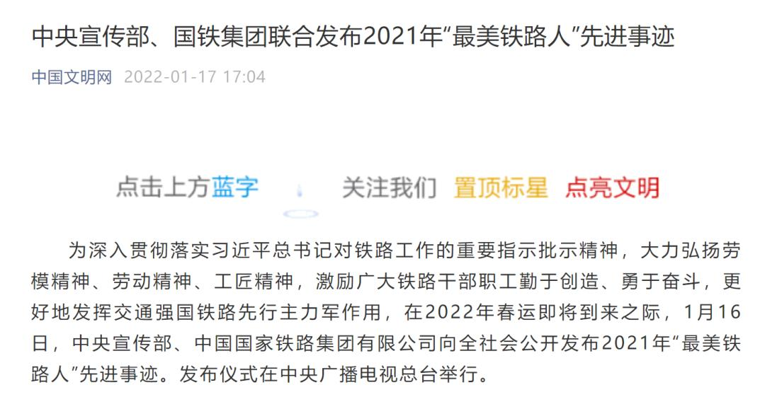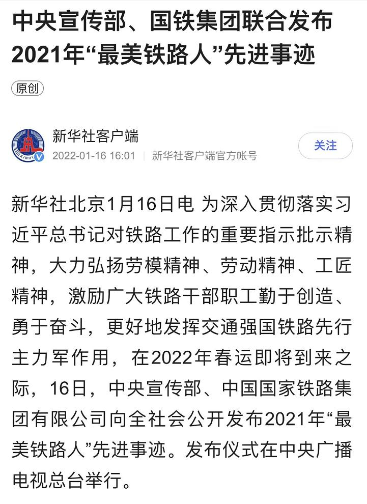 联合发布2021年“最美铁路人”先进事迹