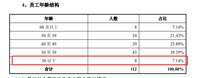 此外超卓航科的员工结构也是存在诸多问题,其中招股说明书披露,公司员工中大专及以下学历占比为68.75%。另一方面公司人员还呈现老龄化,超卓航科30岁以下员工占比仅为7.14%。