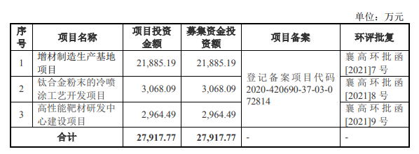 公开资料超卓航科显示成立于2006年,总部位于湖北省襄阳市,是国内少数掌握冷喷涂增材制造技术并产业化运用在航空器维修再制造领域的企业之一,主要从事定制化增材制造和机载设备维修业务。此次公开发行拟募集募集资金2.79亿元,主要用于公司增材制造生产基地项目。