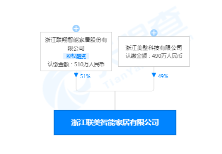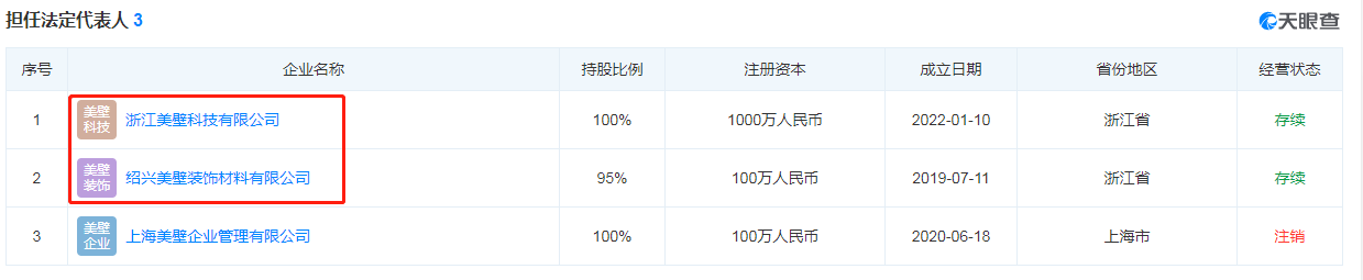绍兴美壁装饰材料有限公司的法定代表人为李先春,李先春同时是浙江美壁科技有限公司的法人并百分比控股。而浙江美壁科技有限公司与联翔股份在2022年1月1日成立了浙江联美智能家居有限公司。