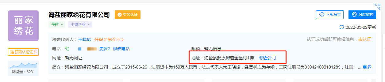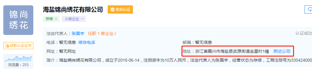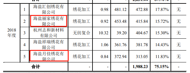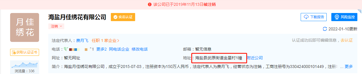 随着深入研究发现,其中多家外协厂商是位于海盐,其中海盐月佳绣花有限公司更是在报告期内注销。而更为蹊跷的是海盐锦尚绣花有限公司、海盐月佳绣花有限公司(下称:月佳绣花)、海盐丽家绣花有限公司(下称:丽家绣花)是同一个注册地址。