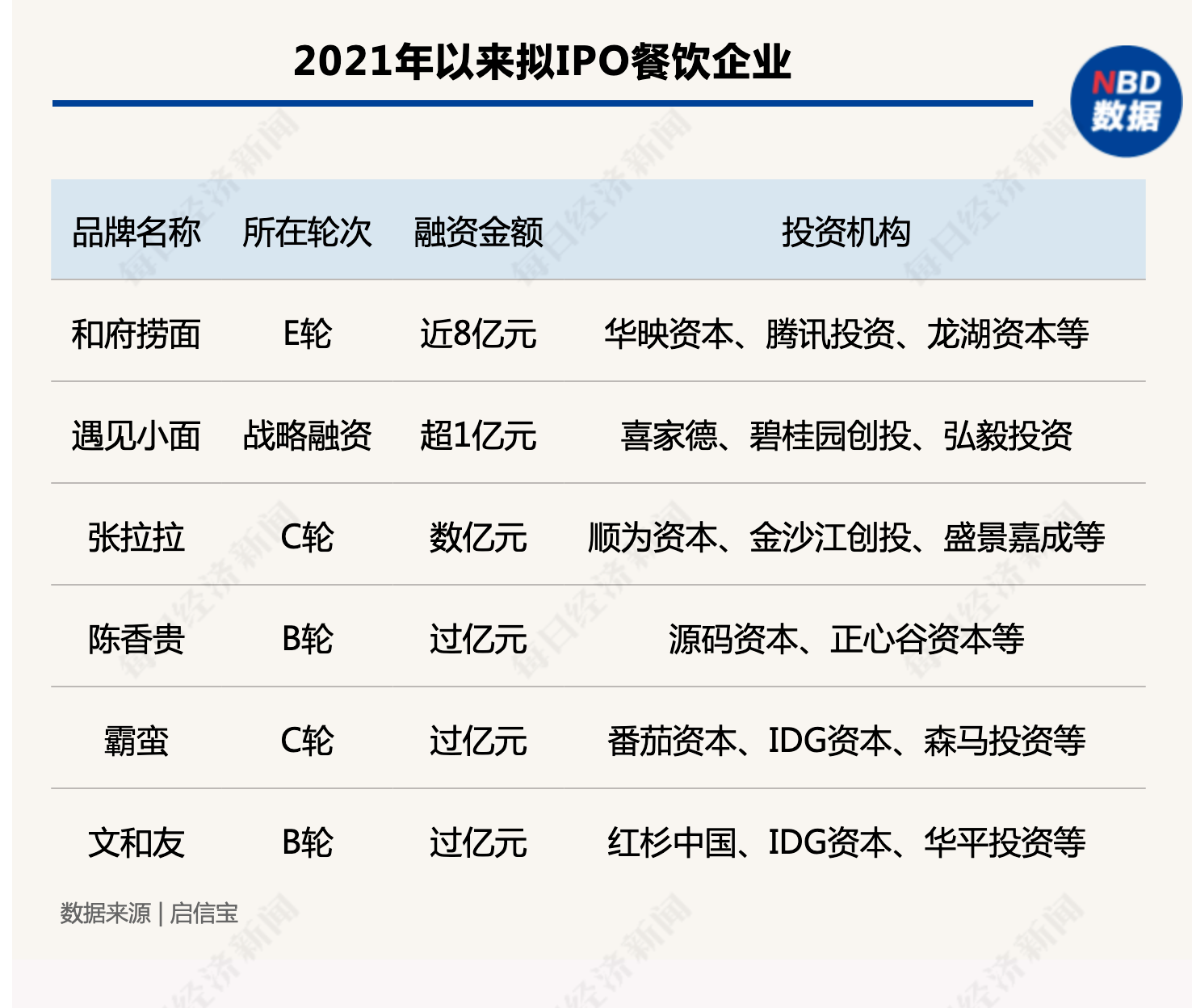 进入2022年,由吃货们捧出的明星餐饮企业开始密集IPO——2月22日,遍布大街小巷的“杨国福”向港交所提交上市申请书,冲刺“麻辣烫第一股”;在此之前,和府捞面、七欣天等也扎堆公布了上市计划。与连锁餐饮“扎堆”冲刺IPO相呼应的,是一级市场餐饮投资在去年一度达到顶峰,明星项目估值更是高达百亿元。有投资人向《每日经济新闻》记者感慨,2021年可能是他从业以来线下餐饮拿到最多投资的一年。
