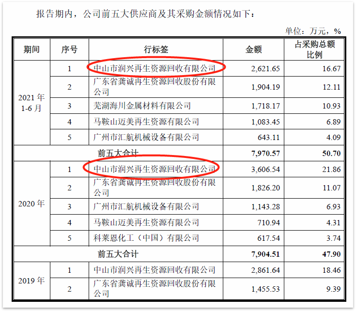 中山市润兴再生资源回收有限公司参保人员2个人,也证明了该企业体量小,容易滋生各种违法违规行为。也给扬山联合精密持续供应带来隐患。
