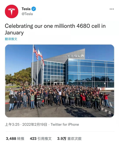 特斯拉布局已久的4680电池终于要大规模量产交付了。据特斯拉官方消息,加州试点工厂在1月生产了100万块4680电池,这标志4680电池开始量产。