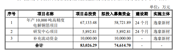 近日创业板公告显示,电子材料领域主要从事电子电路铜箔、铝基覆铜板和 PCB制造的赣州逸豪新材料股份有限公司(下称:逸豪新材)IPO即将上会。逸豪新材本次公开发行拟募集资金7.5亿元,用于公司年产 10,000 吨高精度 电解铜箔项目以及研发中心项目和补充流动资金1亿元。