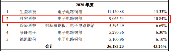 同时对比逸豪新材招股书显示,胜宏科技在2020年为公司第二大客户,公司向其销售金额为9065.54万元。然而在胜宏科技2020年年度报告中却并无这一采购部数据,最接近的第二大供应商采购金额仅7230.46万元,要比逸豪新材招股书中的数据少1835.08万元。