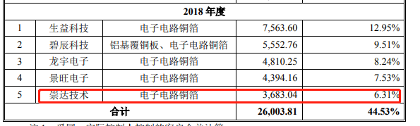 也就是说逸豪新材披露的销售数据竟然比胜宏科技披露的采购数据多了将近两千万元,那么为何会出现如此大金额的差异呢?而且这种差异在2018年也有发生。据逸豪新材招股书披露显示2018年公司第五大客户为崇达技术,公司向其销售金额为3683.04万元。而检索崇达技术的2018年年度报告仍未找到这一数据,其年报中最接近的第一大供应商供应金额为3160.73万元,较逸豪新材披露的销售金额小522.31万元。