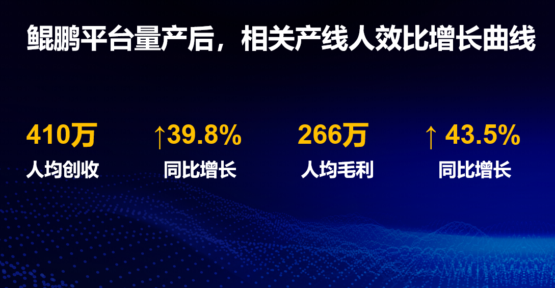 吴亚东透露,鲲鹏平台2021年量产后,2021年产研人员的人均创收超过410万元,同比激增约40%,达到网络安全行业头部厂商的2-3倍,同时人均创造毛利266万元,同比增速更达43.5%。另一方面,边界安全等相关产线的研发效率(创收/研发投入)在2021年达到了9.5,较量产前同比提升40%,较未使用研发平台时提升更是达到70%。