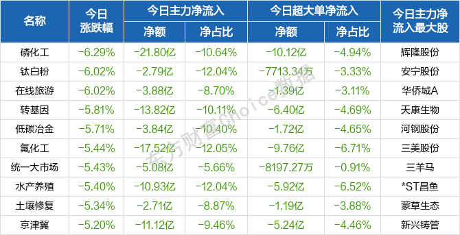 行业板块跌幅榜前十