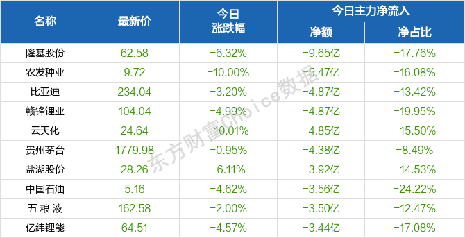 主力净流出前十