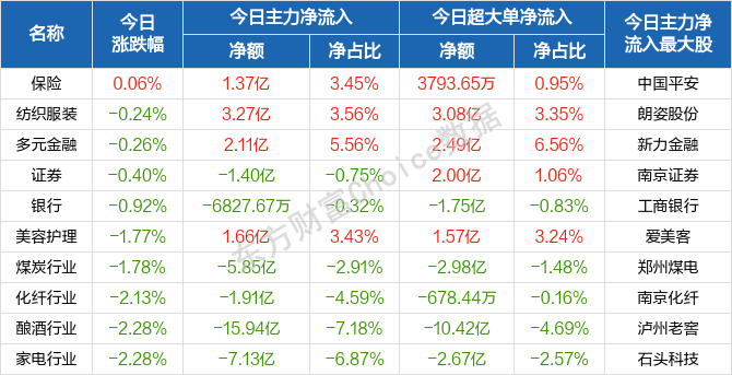 从盘面上来看,金融“三兄弟”力撑A股,纺织服装板块表现抗跌,其余行业与概念板块一片“绿油油”,普跌行情再现,局部赚钱效应不佳。行业方面,保险、证券、纺织服装、银行等行业相对强势。