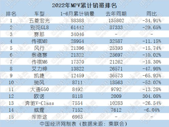 江淮瑞风和大通G50上半年分别销售8711辆和8492辆,长安欧诺销售8118辆,值得注意的是,欧诺同比增幅高达304.1%,表现亮眼;与此同时,奔驰旗下两款MPV奔驰V-Class和威霆也双双上榜,分别销售7554辆和7152辆,去年登陆国内市场的新车库斯途也以6963辆的成绩跻身十五强榜单。(中国经济网记者 陈梦宇)