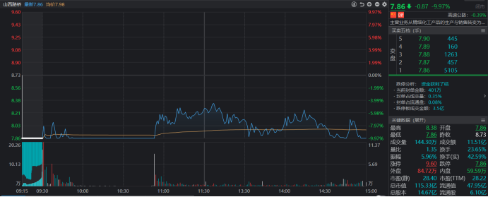 市场高标集体回落,山西路桥首获跌停