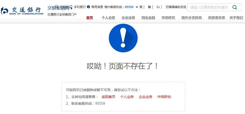 8月2日,在交通银行官网打开这则公告,页面显示已删除。