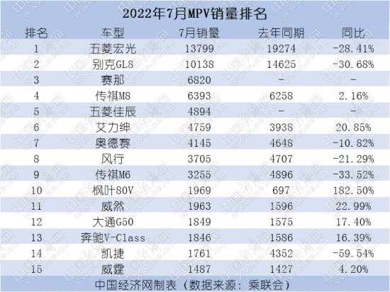 具体来看,7月MPV市场前15榜单涨跌各半,其中新面孔总体强于老面孔:广汽丰田赛那冲劲不减,排名第3,五菱佳辰进入前5,睿蓝枫叶80V同比增幅更是高达182.5%;相比之下,五菱宏光、别克GL8、广汽传祺M6同比降幅均在30%左右,凯捷最具代表性,降幅接近6成。