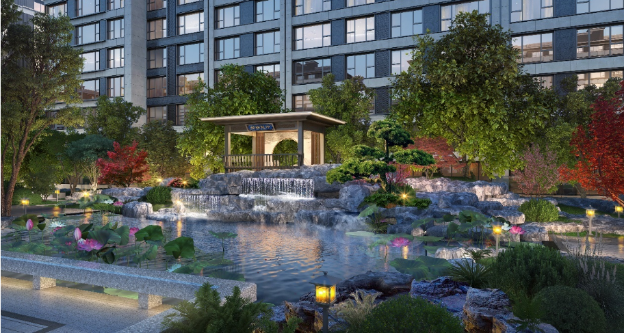 在园林设计上,项目以天坛文脉为依托,以历史名画《乾隆南巡图》为蓝本,汲姑苏名园、江宁乾坤、锦绣西湖等江南园林元素,呈现出中华名园典藏山水的视觉效果。