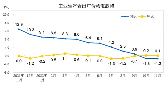 2022年11月工业生产者价格主要数据