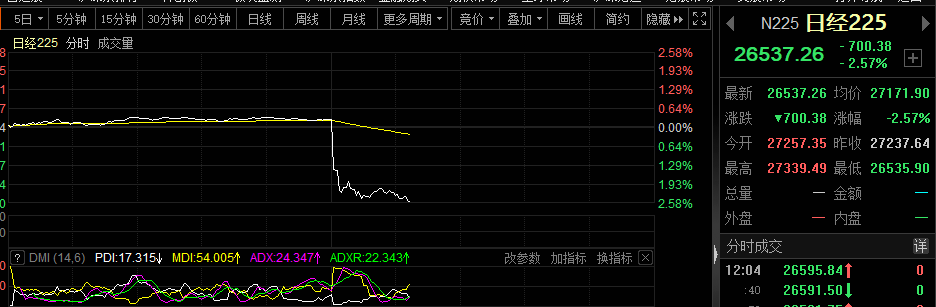日本股市下午开盘之后,直线下坠,跌幅超过2%。
