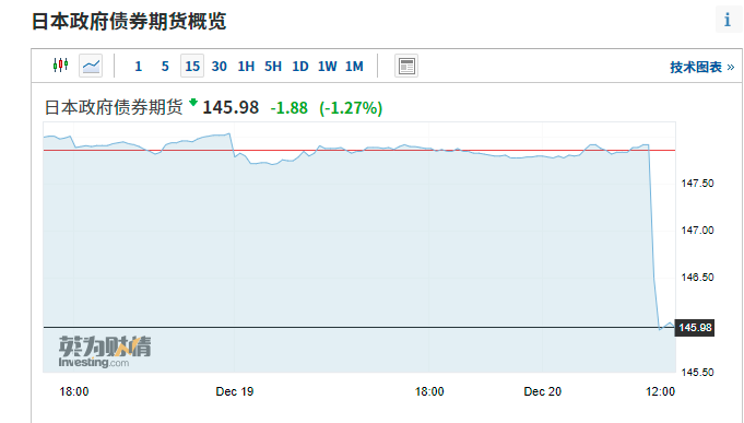 日本10年期国债期货下跌200个跳动点,至6个月低点,并因熔断机制暂停交易。日本政府债券期货亦直线跳水。