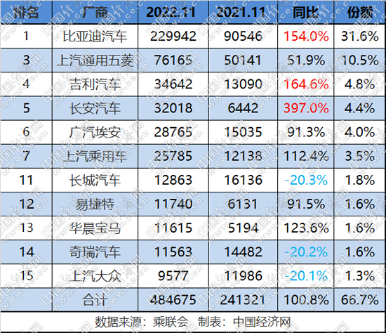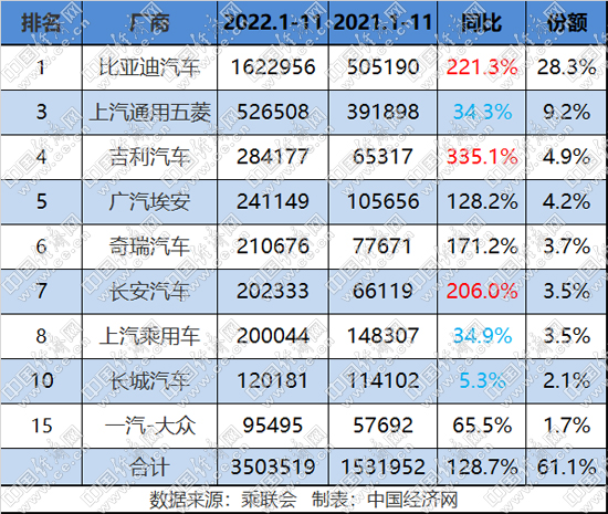 此外,合资品牌还有易捷特和上汽大众进入11月榜单,而从前11月来看,一汽-大众依然领跑传统新能源合资板块。(中国经济网 记者郭涛)