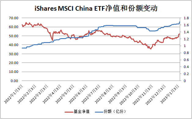 券商中国记者翻阅贝莱德集团官网数据发现,截至1月6日,贝莱德集团旗下投资中国股票最大的ETF-iShares MSCI China ETF自11月以来份额增长0.26亿份,获得持有人大量申购,最新份额达到1.69亿份,再次刷新该ETF份额有记录以来最高值,最新规模为88亿美元。