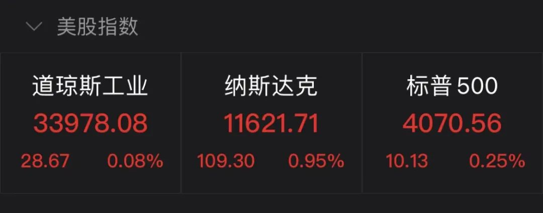 隔夜美股三大指数集体收涨,道琼斯工业指数涨0.08%,录得日线六连阳;纳斯达克综合指数涨0.95%,标普500指数涨0.25%。