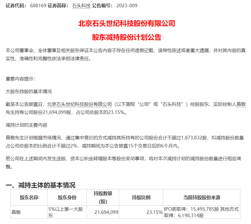 巧合的是,2月21日也是石头科技限售股解禁首日。石头科技在2月13日发布公告称,公司此次上市流通的限售股为公司部分首次公开发行的限售股,限售期为自公司股票上市之日起36个月。本次上市流通的限售股数量共计约2169.41万股,占公司目前总股本的23.15%,为公司控股股东和实际控制人昌敬持有。该部分股份将于2023年2月21日起上市流通。