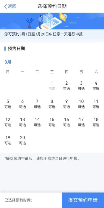 截至2月28日,个税APP显示,3月1日当天预约已满。3月2日-3月20日仍然可以预约。