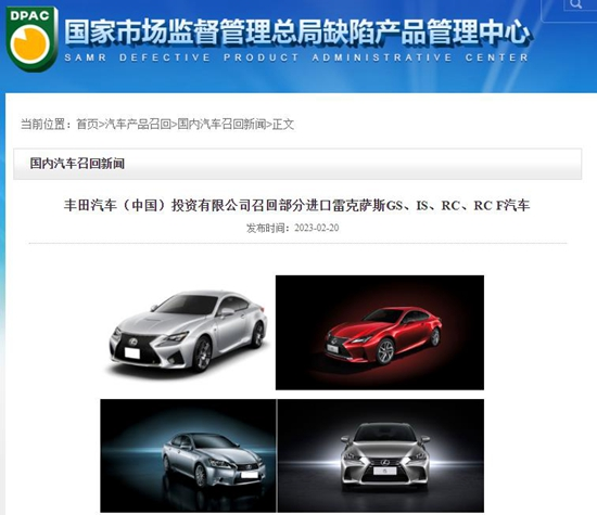2月,雷克萨斯共召回了22965辆乘用车,召回规模仅次于宝马,召回原因是车辆因燃油箱通风管外壳(树脂材料)上部的形状不当,在使用过程中可能产生微小裂痕,长时间使用后裂痕有可能逐渐贯穿壳体。在燃油箱加满燃油等情况下,燃油可能会从通风管外壳裂痕贯穿处渗出,存在安全隐患及不合理排放危害。