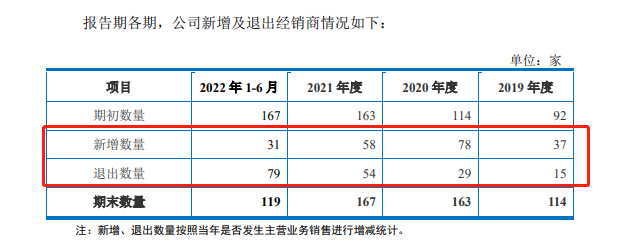 值得留意的是,司南导航主要经销商销售金额变动较大,新增及退出数量较多报告期内出现净流出情形。报告期各期,公司经销商新增数量为 37、78、 58 和 31 家,退出数量为 15 家、29 家、54 家和 79 家,其中2022 年 1-6 月退出经销商上年收入占比 19.23%。