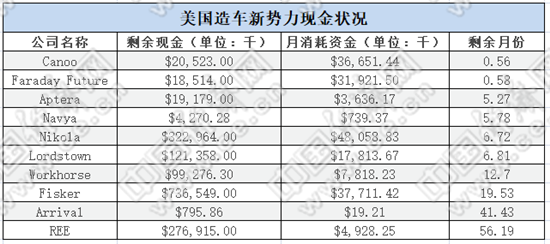 《美国汽车新闻》调查的10家造车新势力中,只有4家手头有足够的现金来支付一年或更长时间的运营费用;另据美国证券交易委员会(SEC)提供的最新文件,只有几家公司可以支付两年以上的现金消耗。