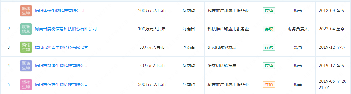除两大推广商疑受同一控制外,《V财网》还发现令人咂舌的是,在跻身一品制药报告期内前五推广商中15家企业中竟然有7家企业互存关联。其中,信阳市聚谦生物科技有限公司、信阳市恒祥生物科技有限公司、信阳市鸿诺生物科技有限公司、信阳盛瑞生物科技有限公司监事同为廉金旺。