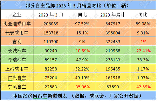 作为自主品牌的头部企业,并有着“自主五虎”之称的比亚迪、长安、吉利、奇瑞和长城,全都保持良好的发展势头。