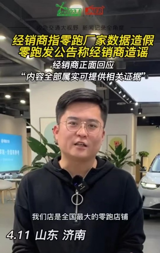 零跑汽车“销量造假”风波持续发酵,涉事双方各执一词。4月11日,在零跑发布《关于济南经销商散布公司不实信息的情况说明》后,山东济南融创茂零跑店店长张某再次发布视频进行公开回应,称其反映内容全部属实,可提供相关证据。