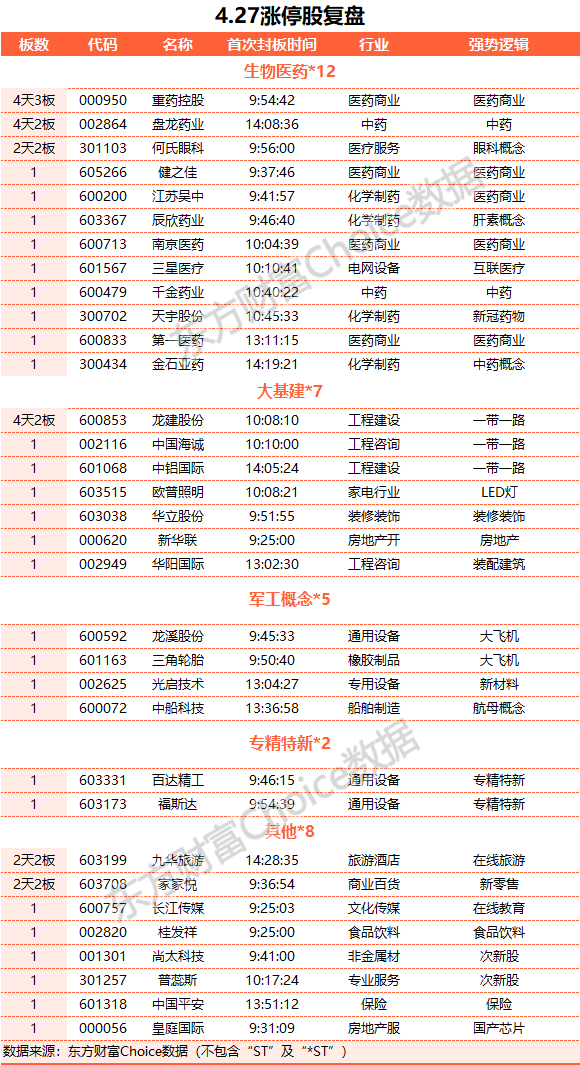 个股方面,医药股集体走强,普蕊斯、金石亚药20CM涨停,拓新药业涨超10%,盘龙药业、千金药业涨停。眼科医疗概念股继续活跃,何氏眼科2连板,普瑞眼科涨超17%。保险股震荡走强,中国平安涨停,新华保险、中国太保涨超6%。船舶概念股午后异动,国瑞科技涨超10%,中船科技涨停。AI概念股全线大跌掀跌停潮,中文在线、中石科技20CM跌停,三六零、剑桥科技、上海电影、浙数文化、视觉中国等多股跌停。