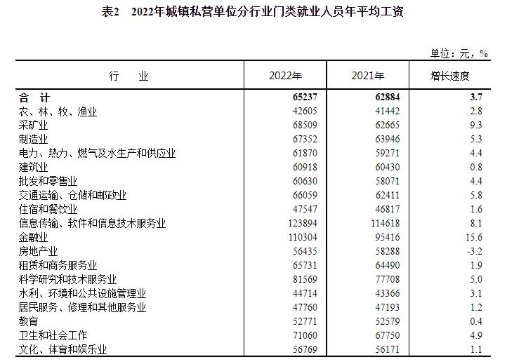 数据显示,城镇非私营单位中,金融业年平均工资达到174341元,增长15.6%。城镇私营单位中,金融业年平均工资达到110304元,同样增长15.6%。