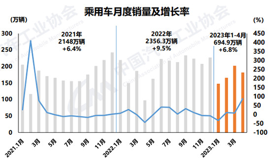 综合前4个月,汽车产销分别完成835.5万辆和823.5万辆,同比分别增长8.6%和7.1%。陈士华表示,由于去年4月疫情导致生产供应基本停滞,汽车产销一度出现断崖式下跌,同期基数相对较低,今年累计产销实现由负转正。