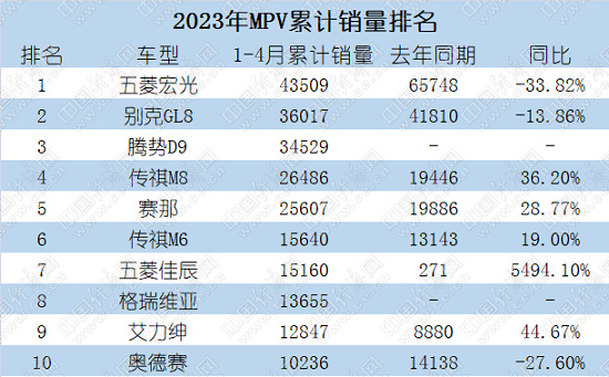 具体来看,别克GL8稳坐4月MPV“头把交椅”,单月销量为12740辆,同比增长44.4%;但其前4月累计销量同比下降13.9%至36017辆,是为数不多的下降车型之一。