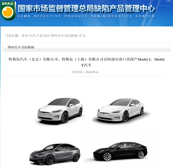 具体来看,特斯拉汽车(北京)有限公司、特斯拉(上海)有限公司决定,将自2023年5月29日起,召回生产日期在2019年1月12日至2023年4月24日期间的部分进口Model S、Model X、Model 3及国产Model 3、Model Y汽车,共计1104622辆。