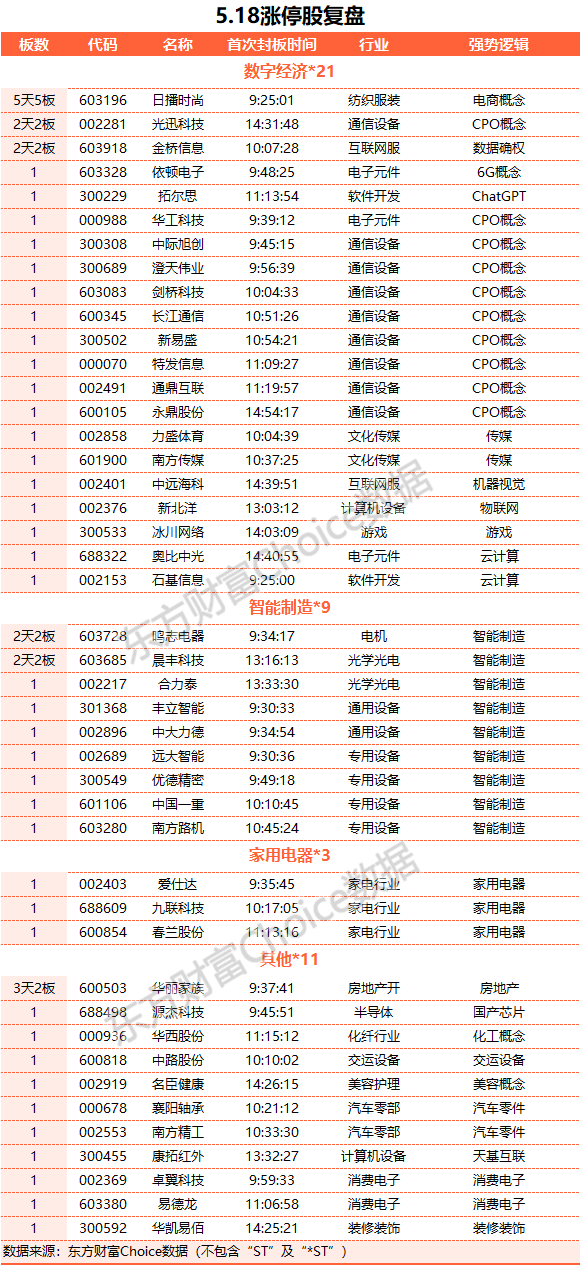 个股方面,上涨股票数量超过2500只。AI概念股全线反弹,CPO方向领涨,源杰科技、中际旭创、新易盛均20CM涨停;ChatGPT概念股大涨,华凯易佰、拓尔思20CM涨停。智能制造概念股继续活跃,丰立智能20CM涨停,南方精工、襄阳轴承、中大力德等多股涨停。金融股盘中冲高,华夏银行涨超4%,邮储银行涨近3%。下跌方面,新能源赛道股陷入调整,杭可科技跌超8%,科达利跌超5%。