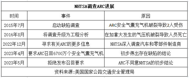 然而,ARC拒绝了这一要求,并“强烈反对NHTSA的‘初步结论’,即驾驶员和乘客的充气机存在安全缺陷”。