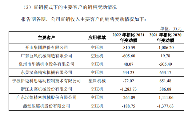 报告期内持续性的业绩下滑也遭到交易所问询,毕竟其中2022 年公司营业收入降幅更是超过10%。从问询回复披露显示,2022年仅公司通用变频器产品销售收入就下降 5,779.19 万元。