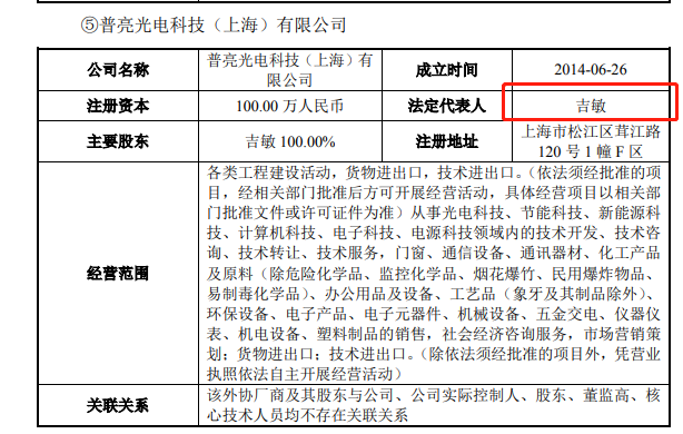 众辰电子未将两公司合并披露,但是根据企查查显示上海任威电子科技有限公司实控人纪武德曾担任普亮光电科技(上海)有限公司监事职位,两公司共用同一联系电话201-544***76。而且5月24日更新的上会稿显示普亮光电科技(上海)有限公司实控人吉敏,但是企查查显示吉敏已在2023年03月29日已经退出该公司。