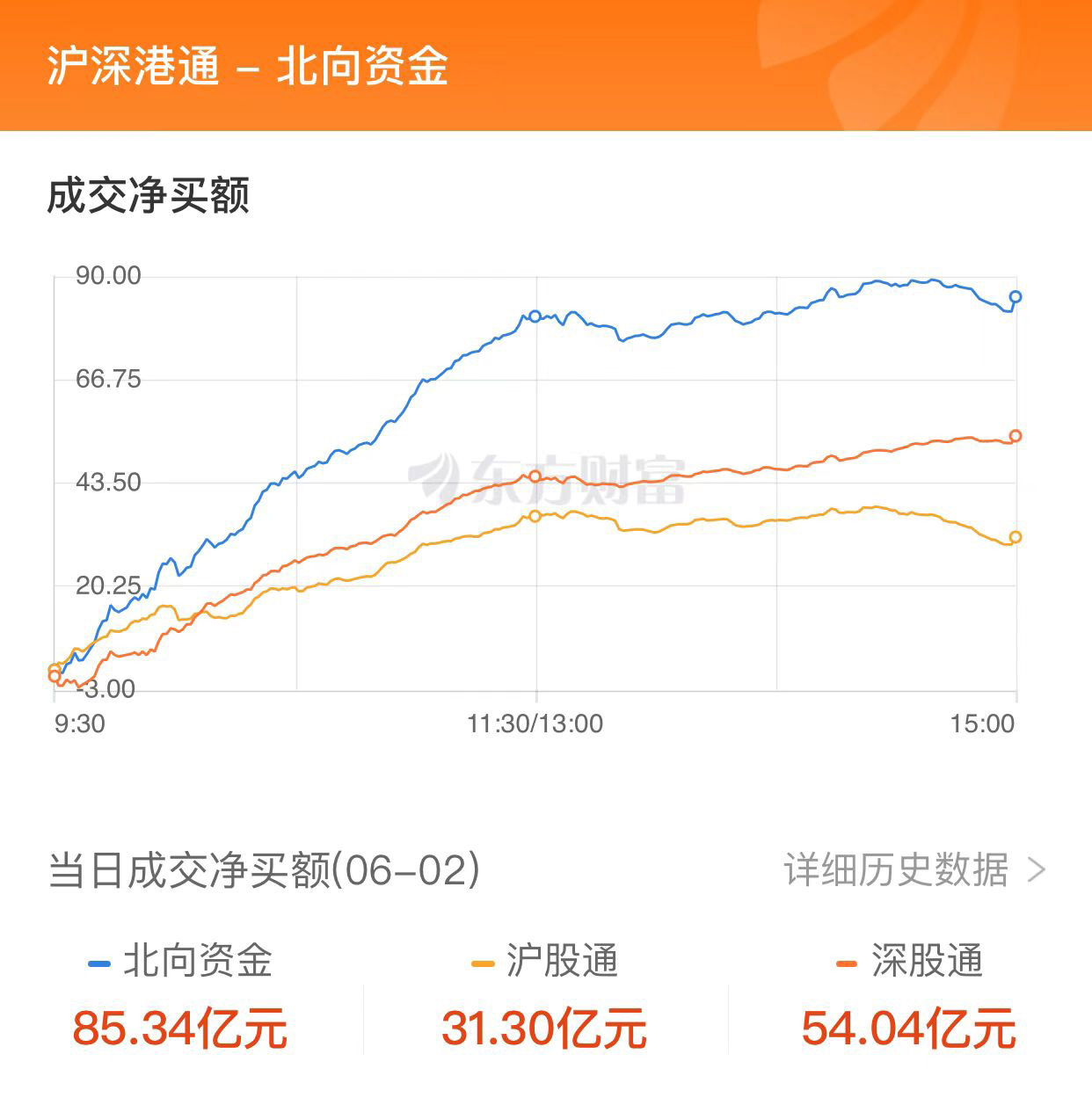 北向资金净流入85.34亿元