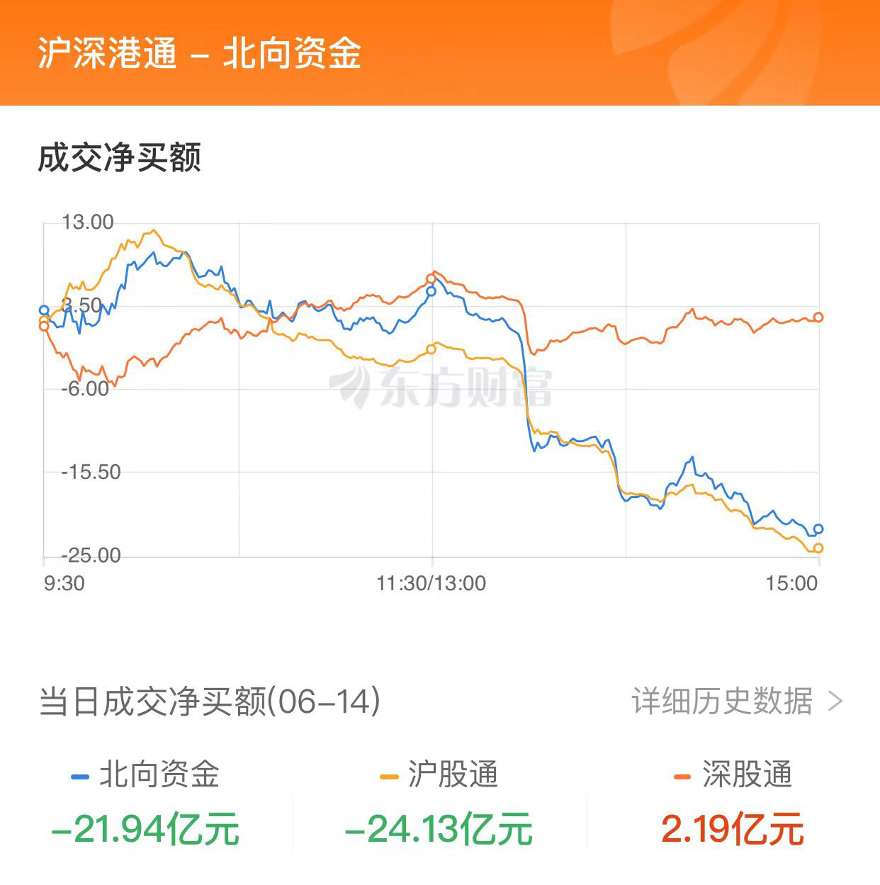 北向资金净流出21.94亿元