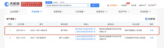 同日,南京知行电动汽车有限公司也新增一则破产案件,申请人为南京市栖霞区电力设备安装工程有限公司、圣戈班汽车玻璃(上海)有限公司、上海华讯网络系统有限公司。股东信息显示,该公司由南京知行新能源汽车技术开发有限公司、南京兴智科技产业发展有限公司等共同持股。