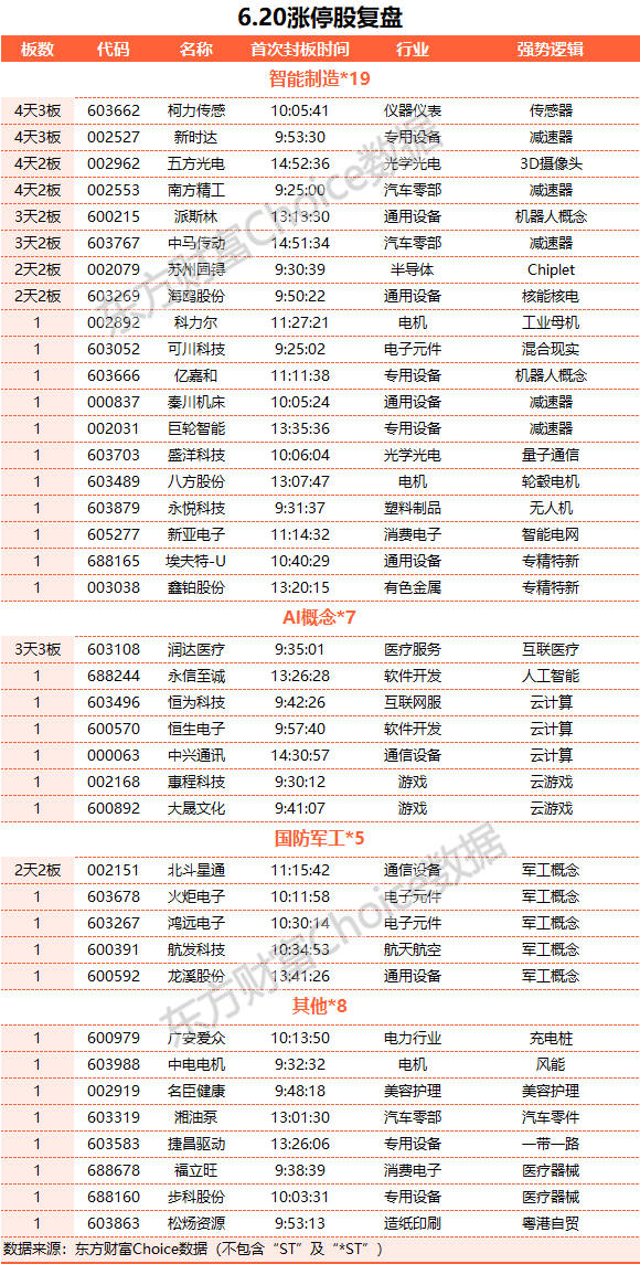 个股方面,上涨股票数量超过1500只。机器人概念股再度活跃,步科股份、埃夫特、南方精工、新时达等超10股涨停。AI概念股走势分化,其中ChatGPT概念股午后拉升,科大讯飞、万兴科技均大涨创历史新高;游戏、传媒股冲高,盛天网络涨超10%,大晟文化涨停;服务器、算力方向继续活跃,中兴通讯涨停,寒武纪涨超10%;CPO概念股展开调整,意华股份、永鼎股份跌超5%。军工股震荡走强,航发科技、北斗星通涨停,中国船舶一度涨停。下跌方面,消费股陷入调整,来伊份、道道全接近跌停。