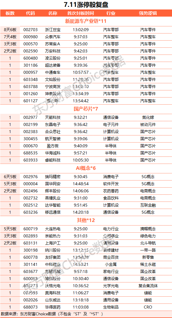 个股方面,上涨股票超过3500只。汽车产业链个股午后集体走强,其中整车方向,众泰汽车、赛力斯、中通客车涨停;智能驾驶方向,浙江世宝、万安科技涨停;汽车零部件方向,文灿股份、坤泰股份、宁波高发涨停。芯片股集体反弹,存储芯片方向领涨,华海诚科20CM涨停,盈方微、睿能科技涨停。稀土永磁概念股尾盘走强,中科磁业20CM涨停。下跌方面,电力股陷入调整,杭州热电、晋控电力跌超5%。