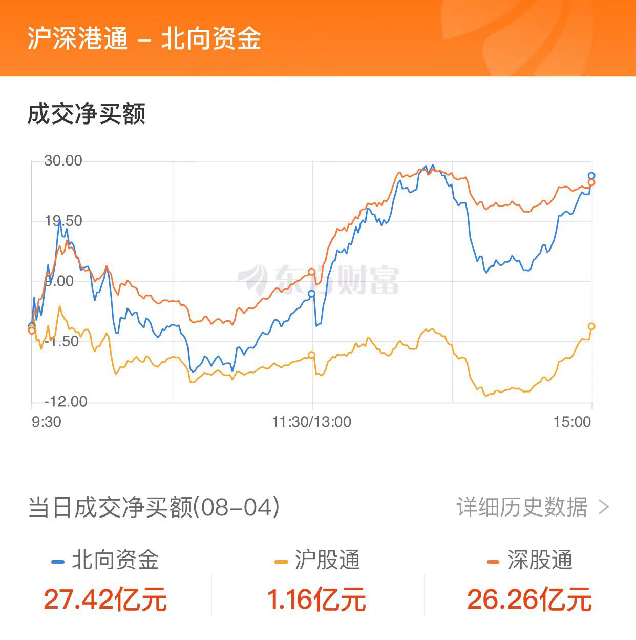 北向资金今日净流入,截至收盘,沪股通净流入1.16亿元,深股通净流入26.26亿元,合计净流入27.42亿元。